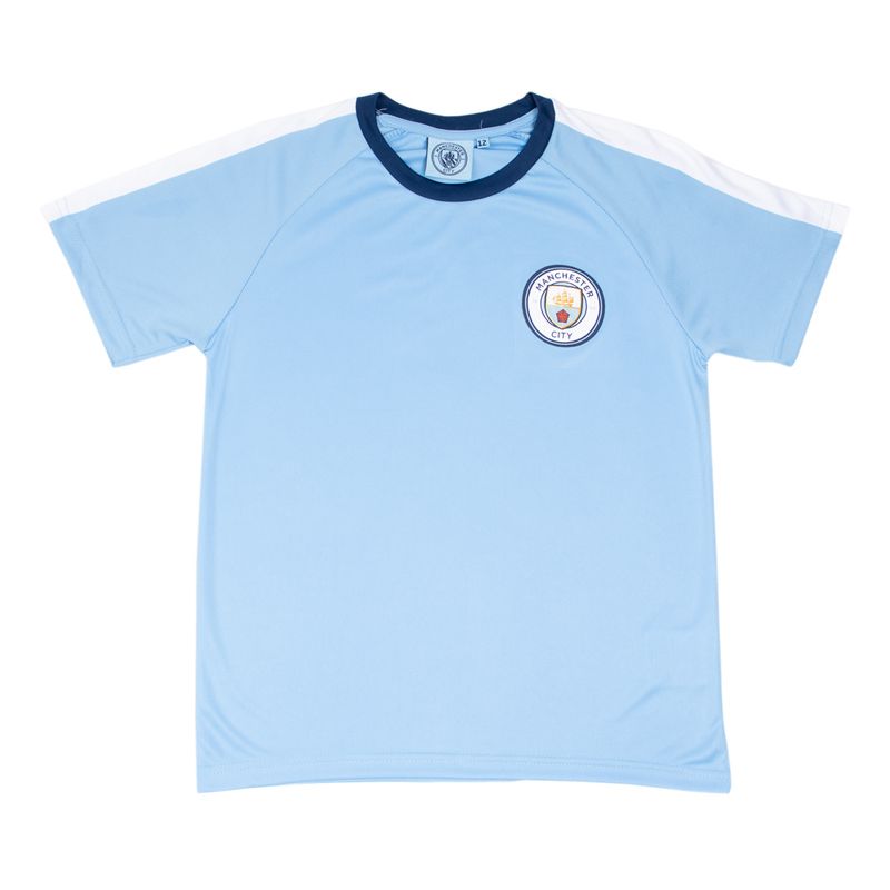 Com gola careca e mangas curtas, a Camiseta Infantil Manchester City é perfeita para momentos de lazer, escola ou atividades esportivas, entregando conforto e um visual cheio de atitude para os jovens torcedores.