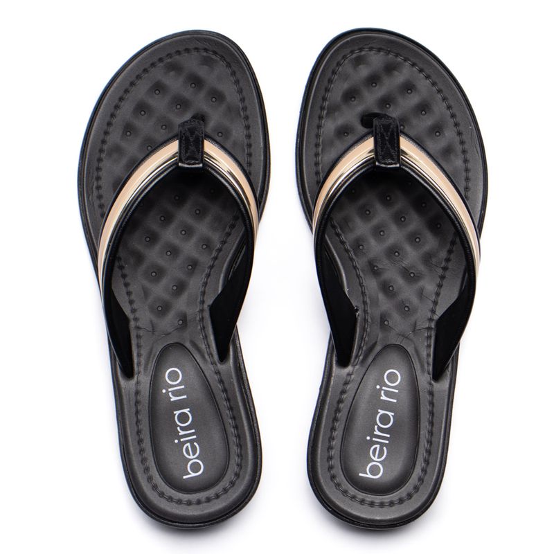 Chinelo Feminino Beira Rio com Detalhe Dourado Preto