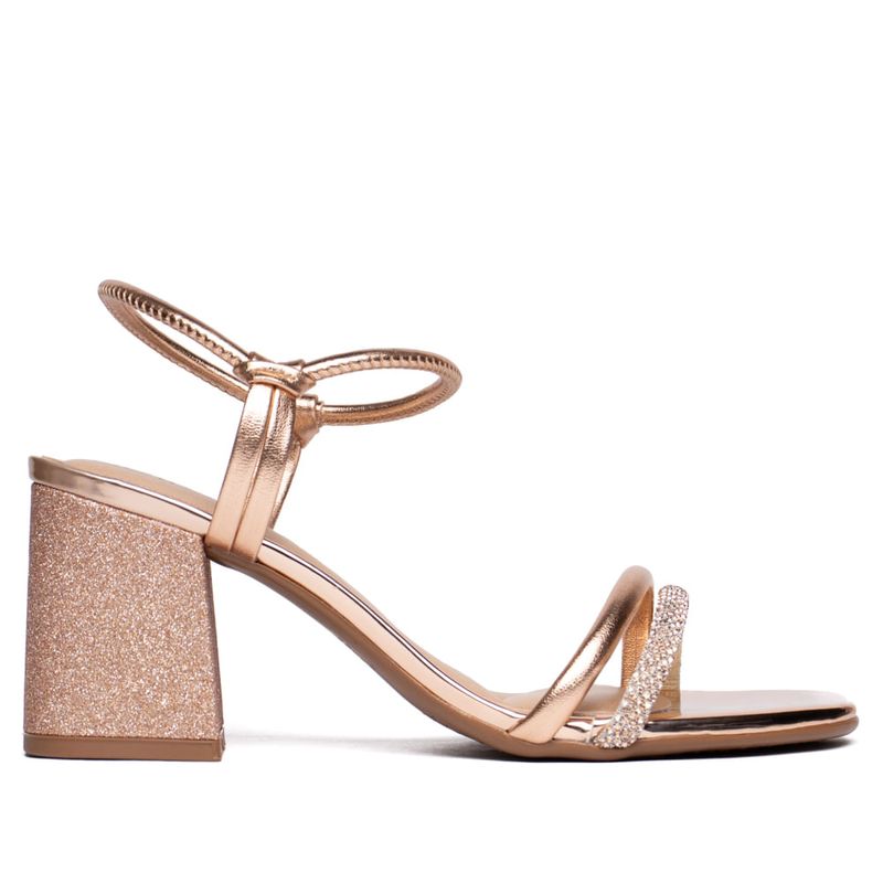 Nome do produto: Sandália Feminina Beira Rio Salto Glitter Ouro Rosado