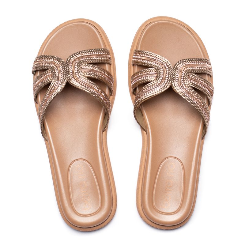 A Rasteira Feminina Beira Rio Metalizada Ouro Rosado é a escolha certa para quem deseja conforto aliado a um estilo sofisticado, tornando-se a peça-chave em qualquer produção.