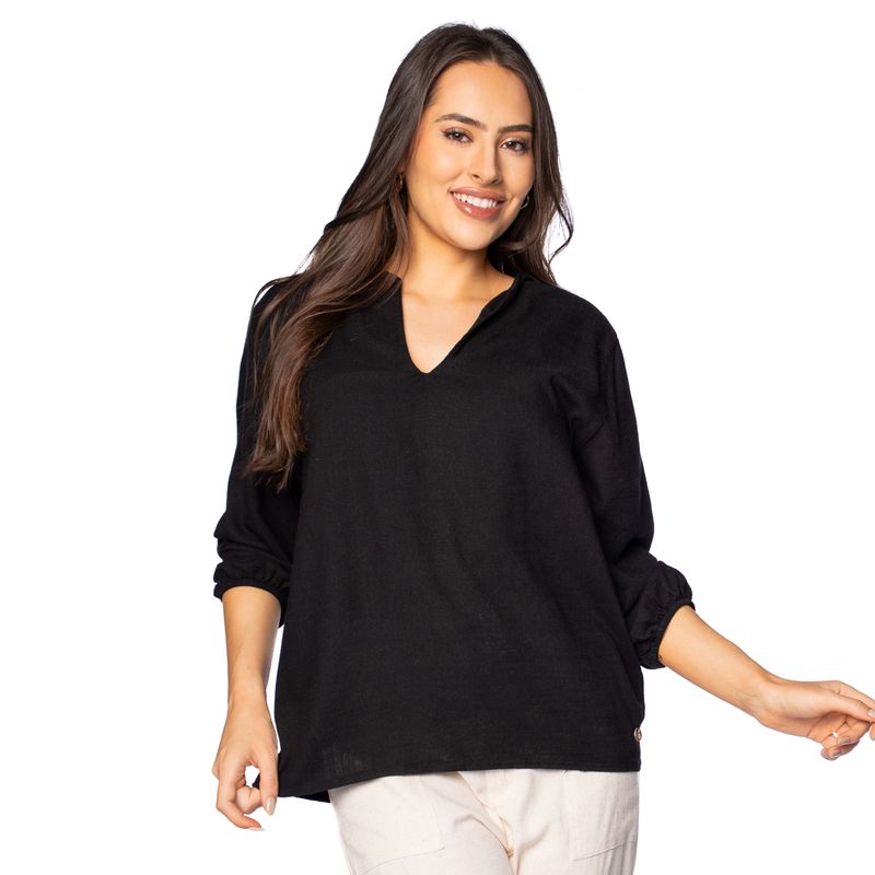 Nome do produto: Blusa Feminina Biamar com Decote Cavado Preto