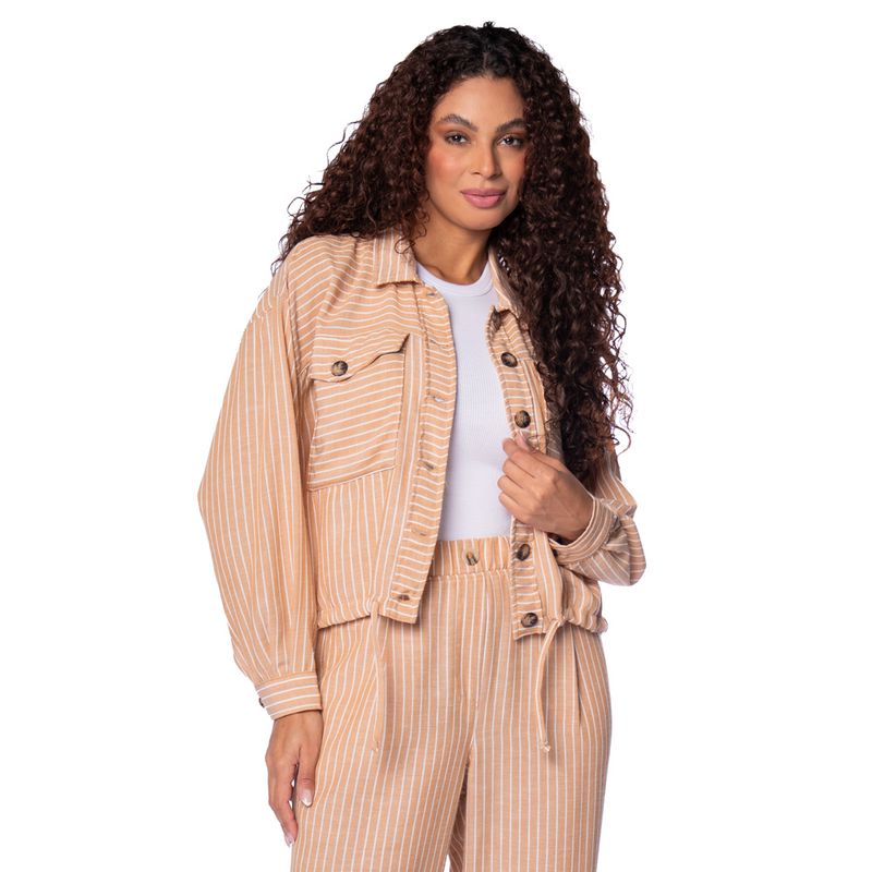 Padronagem em listras e versatilidade no uso (camisa ou jaqueta)