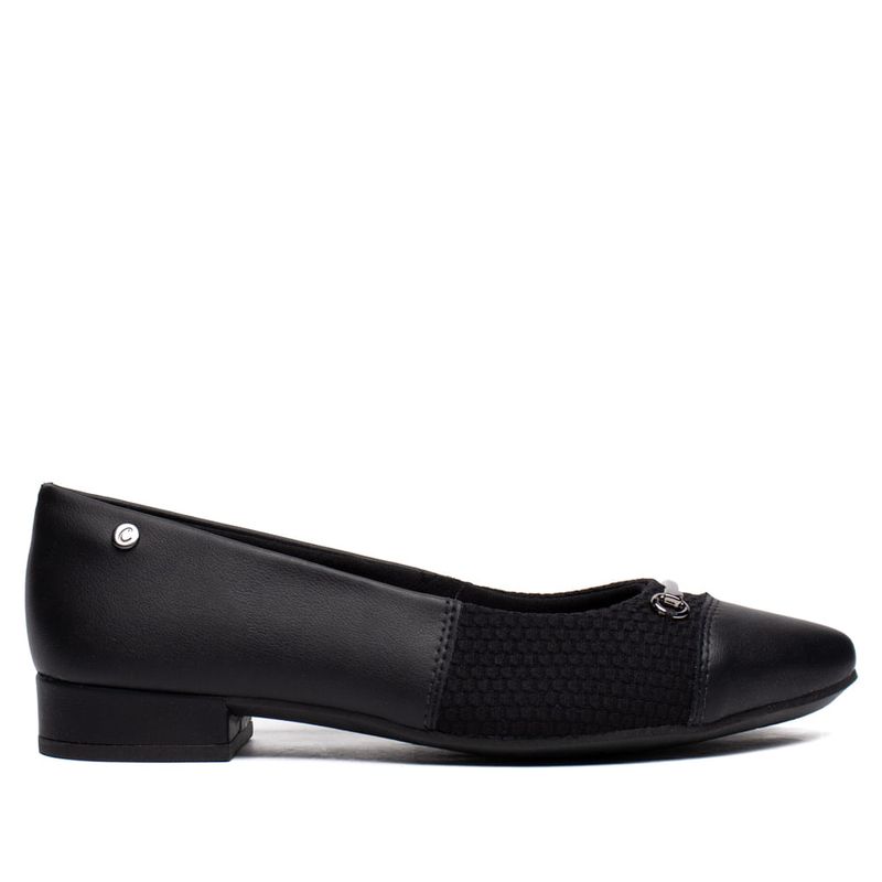 O cabedal em têxtil texturizado com napa valoriza o acabamento e destaca a peça metalizada frontal, que adiciona um toque refinado ao visual. O bico fino contribui para uma silhueta mais elegante, enquanto o salto bloco baixo oferece estabilidade para caminhar com mais segurança e leveza. Pensado para entregar bem-estar em cada passo, conta com a tecnologia Joanete, que ajuda a reduzir dores e desconfortos nas áreas de maior atrito. O forro com tecnologia Aloe Vera proporciona sensação agradável ao contato com os pés, enquanto a palmilha em espuma reforça a maciez durante o uso prolongado.
