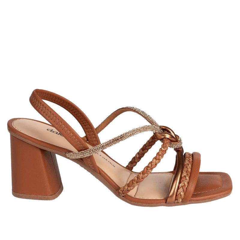 Nome do produto: Sandália Feminina Dakota Salto Bloco com Tranças e Strass Caramelo