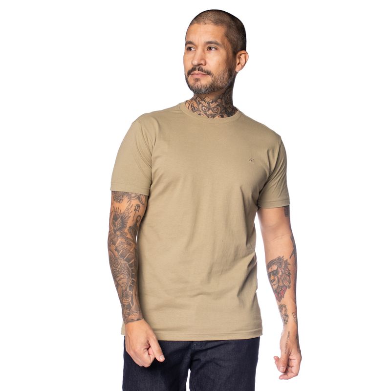 • A Camiseta Masculina Dixie Lisa Bordado Verde Oliva traduz o equilíbrio perfeito entre elegância e casualidade, ideal para compor looks atemporais e alinhados.
