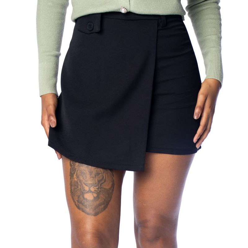 • O Short Saia Feminino Karma&Co Transpassado Preto é a escolha perfeita para mulheres que buscam uma peça moderna e funcional, ideal para compor looks versáteis com conforto e estilo.