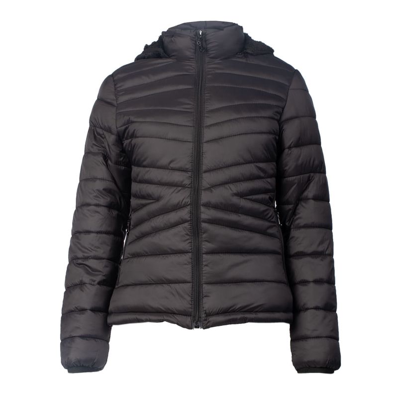Jaqueta Feminina Eagle Rose Puffer Capuz Peluciada Preto
