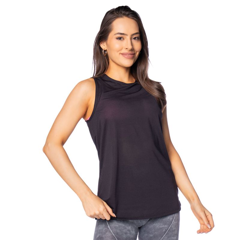 FEMININOVESTUÁRIOBLUSASRegata Feminina Estilo do Corpo UV35 Microfuros Preto