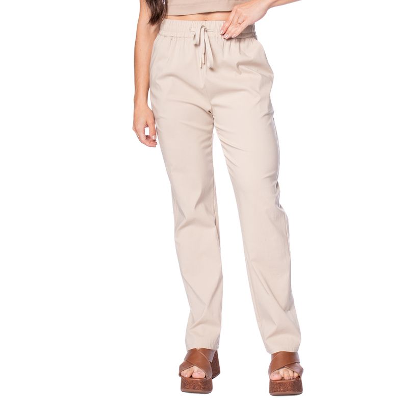 Nome do produto: Calça Feminina Facinelli Bengaline Com Elástico e Cordão Areia