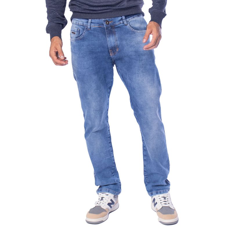 Confeccionada em jeans com composição de algodão, poliéster e elastano, oferece leve elasticidade, caimento confortável e resistência ao uso. A modelagem reta valoriza diferentes silhuetas e proporciona liberdade de movimentos. Possui cós com passantes, fechamento por zíper e botão, além de bolsos funcionais na frente e nas costas. A lavagem azul tradicional reforça a versatilidade da peça, ideal para compor looks casuais e modernos.