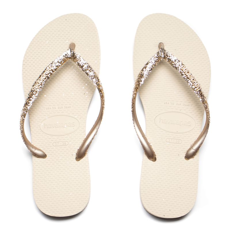 Chinelo Feminino Havaianas Slim Glitter Areia/Dourado