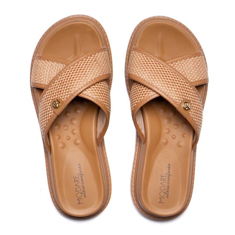 Tamanco Feminino Modare Tiras Cruzadas Tramado Caramelo