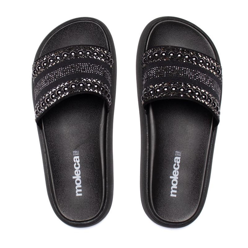 CALÇADOSFEMININOCHINELOSChinelo Feminino Moleca Flatform Slide Pedrarias Preto