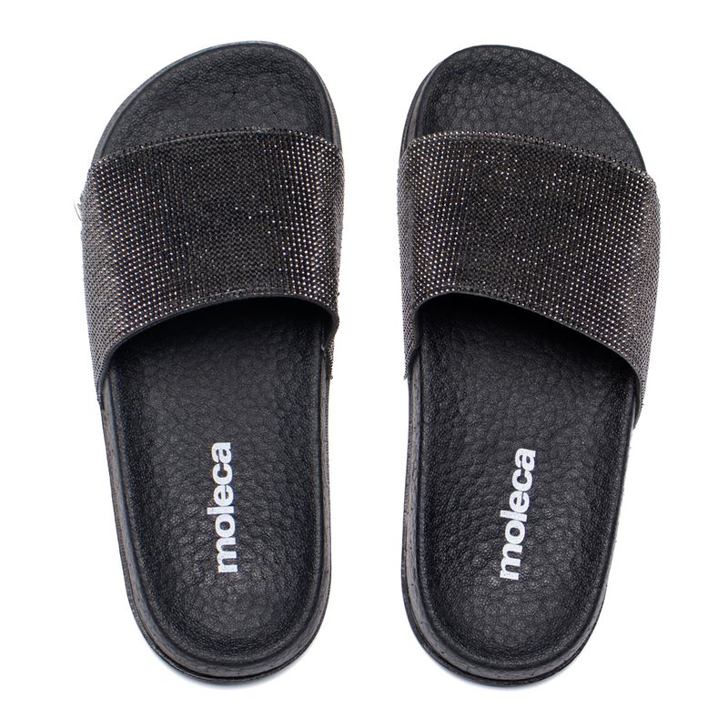 Chinelo Slide Feminino Moleca Flatform Strass Preto