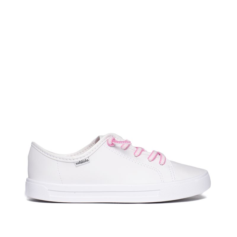 Com visual básico e delicado, combina facilmente com diferentes produções, desde looks escolares até momentos de lazer. O destaque fica para o cadarço bicolor em rosa e branco, que adiciona um toque charmoso ao visual. O cabedal em material sintético tipo napa garante resistência e fácil manutenção, enquanto o interior têxtil proporciona conforto durante o uso prolongado. A palmilha em espuma contribui para uma pisada mais macia, acompanhando a rotina das crianças com bem-estar.