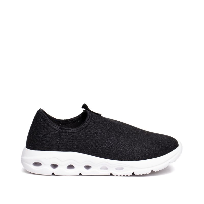 Cabedal com glitter, calce fácil e solado leve e flexível