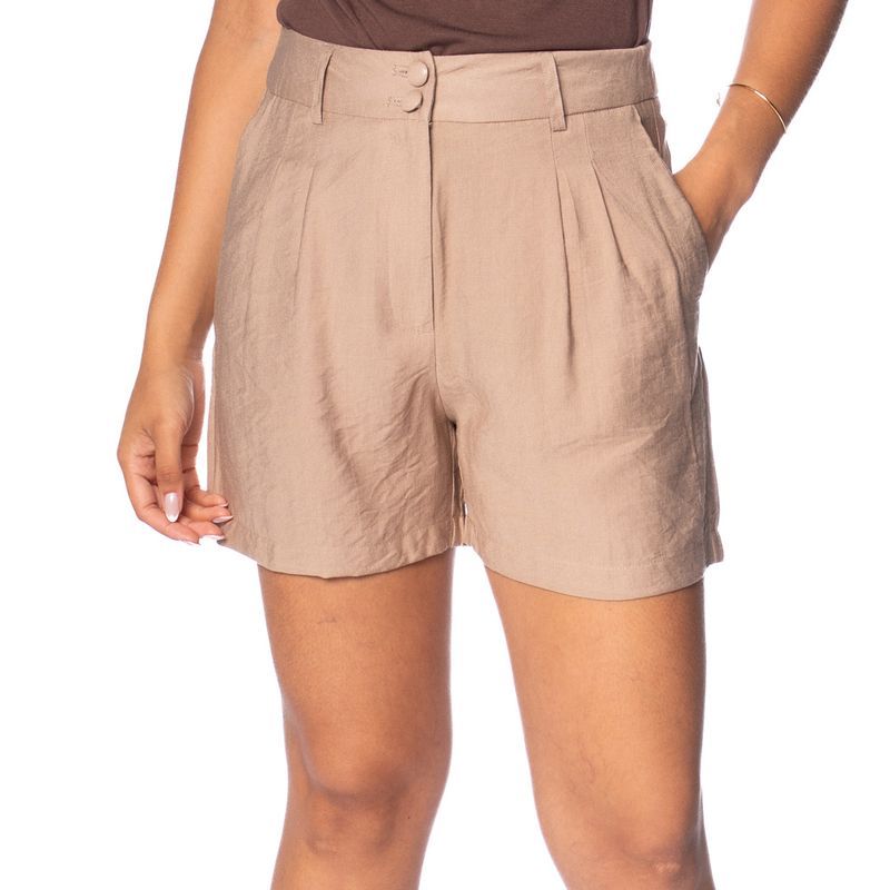 Short Feminino Pellini Frisos Cintura Alta Bege