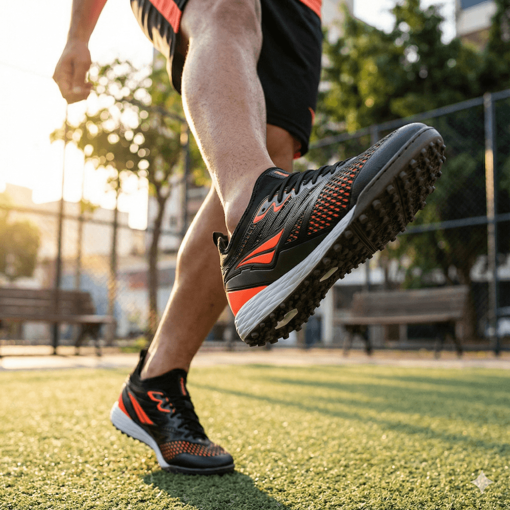 Com palmilha em PU conformada perfurada, o modelo garante conforto prolongado e melhor respirabilidade. Resistente, confortável e funcional, é a escolha certa para atletas que querem dominar o jogo do início ao fim.