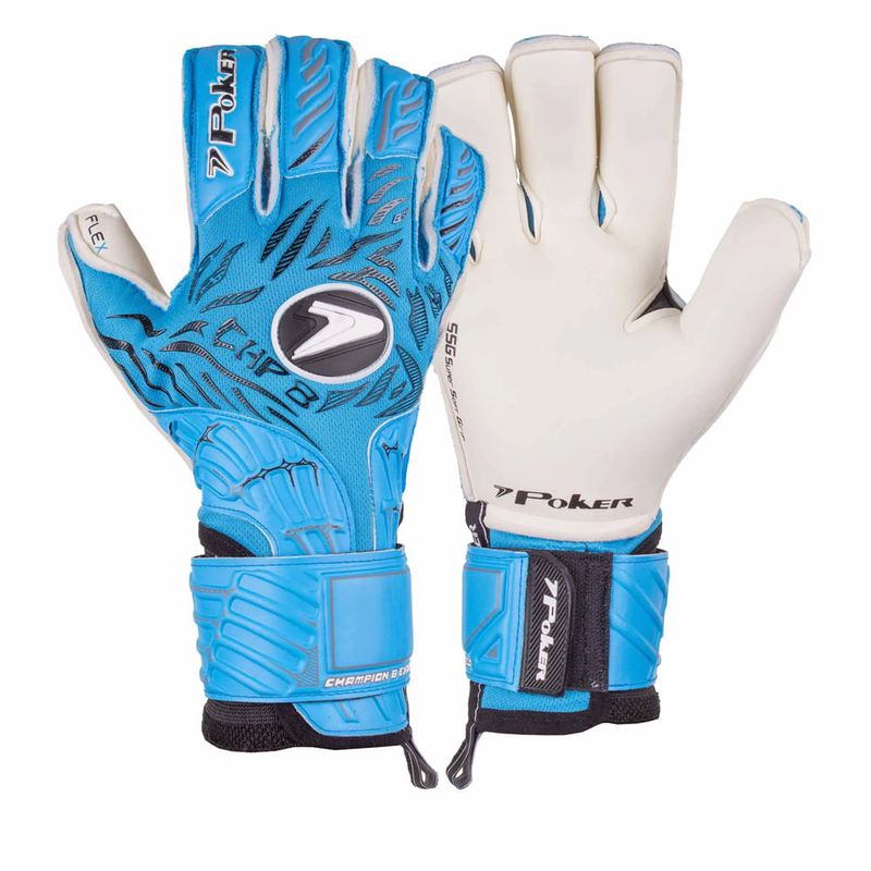 • A Luva de Goleiro Poker Champion 8 Extended Profissional Azul apresenta um novo design com uma visão esportiva de movimento e fluidez.