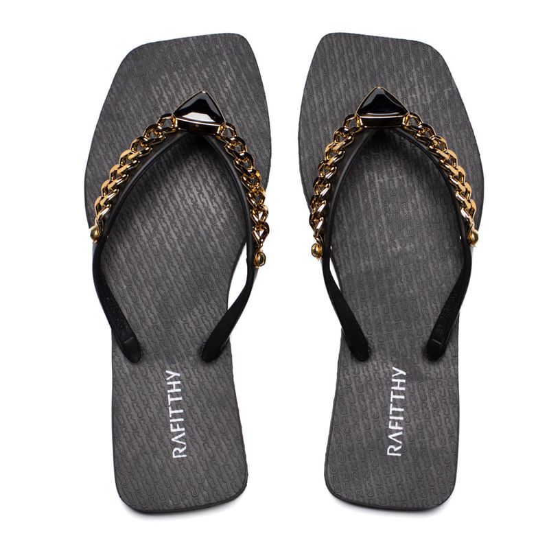 Chinelo Feminino Rafitthy Charm Preto/Dourado