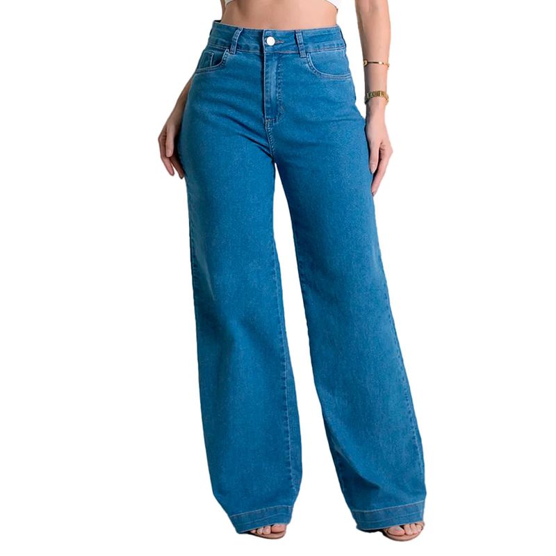 Calça Jeans Feminina Sawary Wide Leg Cintura Alta Azul Claro