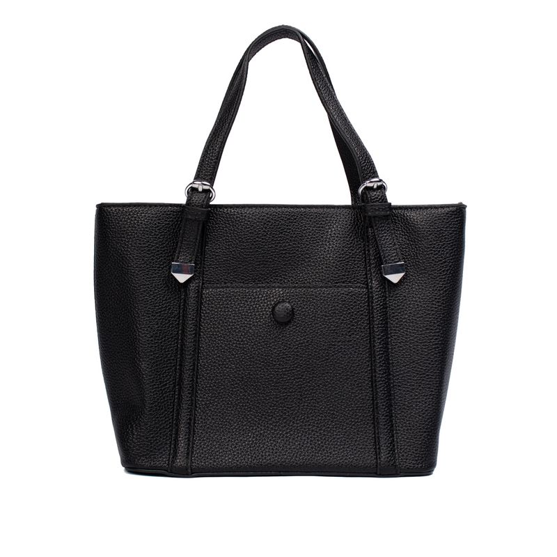 Confeccionada em poliéster recoberto com PU, a bolsa apresenta acabamento burnished que realça o brilho sutil do material. O compartimento principal conta com fechamento em zíper, garantindo segurança para seus pertences. A parte externa possui bolso com botão de pressão e alças versáteis - de mão e transversal - que permitem diferentes formas de uso. O interior têxtil conta com dois bolsos internos, sendo um com zíper e outro aberto, ideais para manter tudo bem organizado.