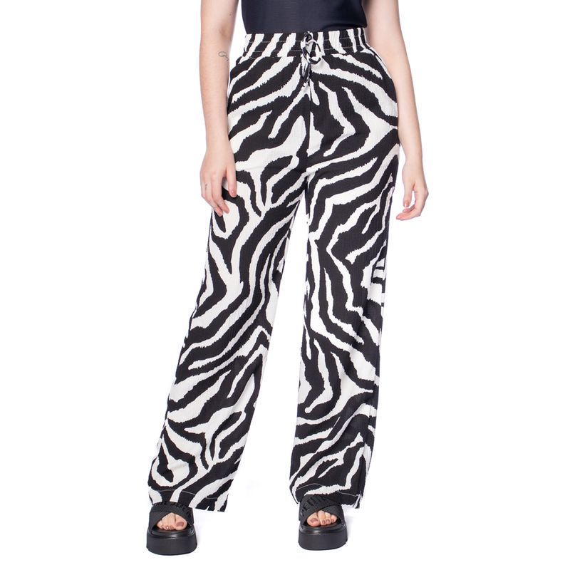 Nome do produto: Calça Feminina The Style Box Wide Leg Estampada Preto/branco