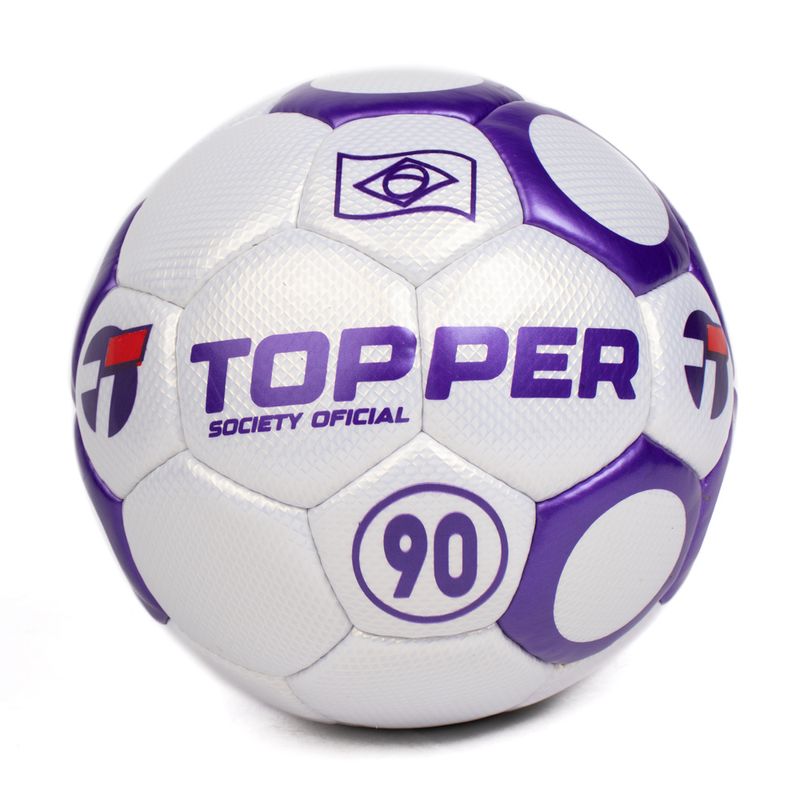 • A Bola Society Topper 90 PU Soft Branco/Roxo foi desenvolvida para oferecer alto desempenho em partidas de futebol society, sendo ideal para campos de grama sintética. Com construção robusta e visual moderno, garante controle, precisão e resistência durante o jogo.