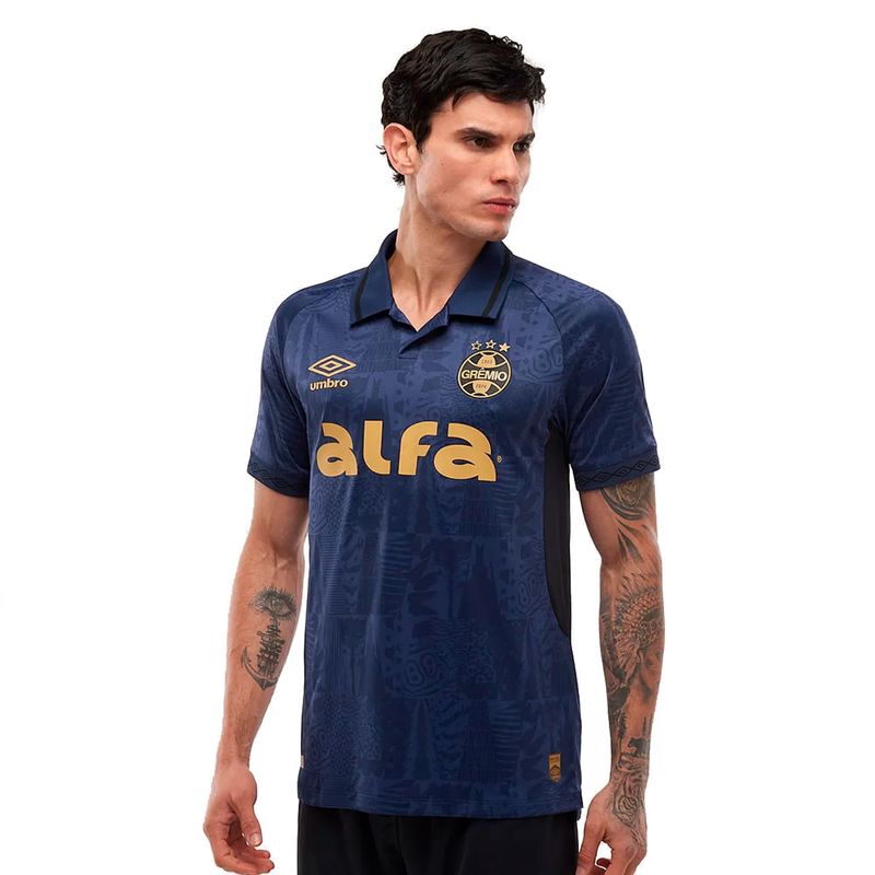 Camisa Masculina Umbro Grêmio OF.3 2025 Marinho/Dourado