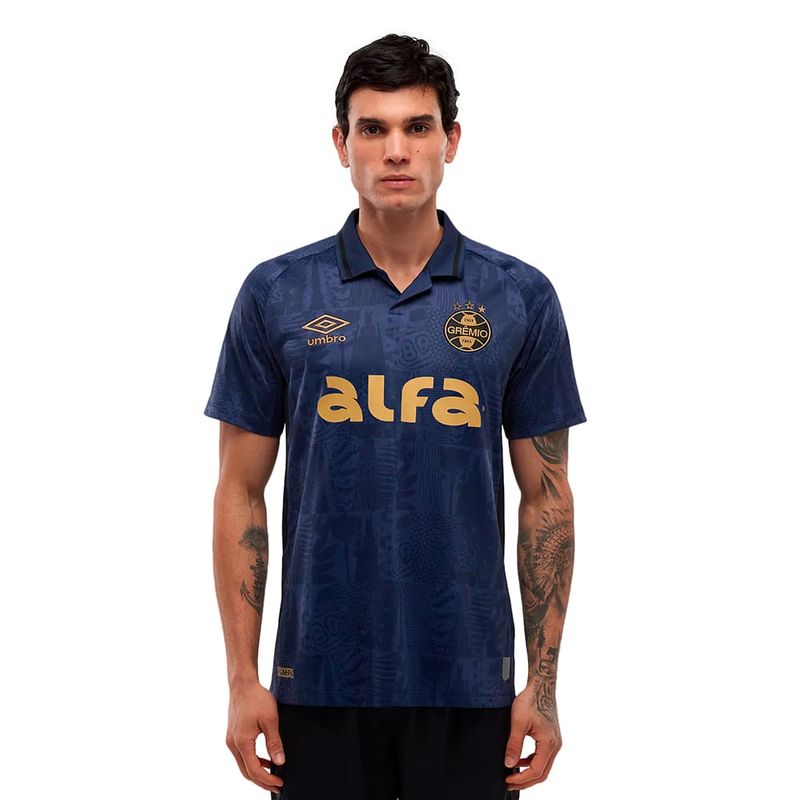 Camiseta Masculina Umbro Grêmio 3 2025 Marinho/Dourado