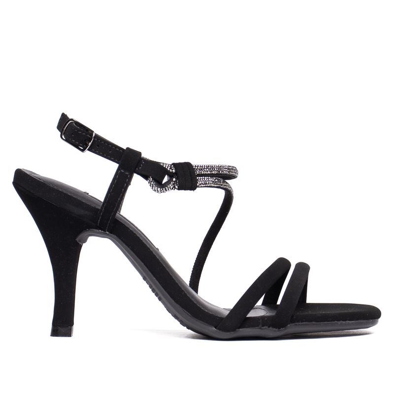 CALÇADOSFEMININOSANDÁLIASSandália Feminina Via Marte Nobuck Salto Alto Strass Preto