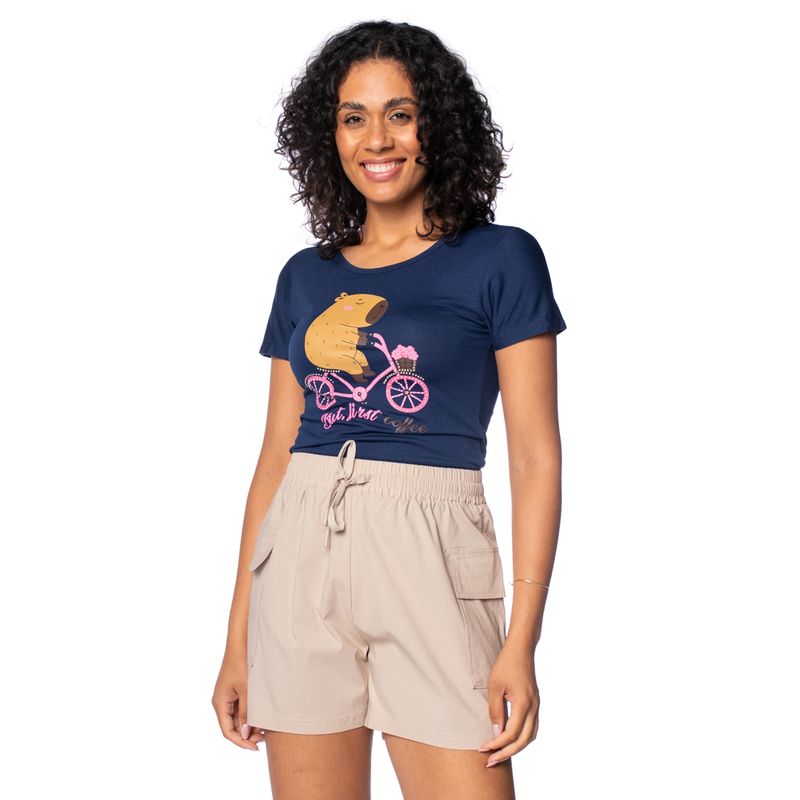 Blusa Feminina Vitória Estampa Capivara Strass Marinho