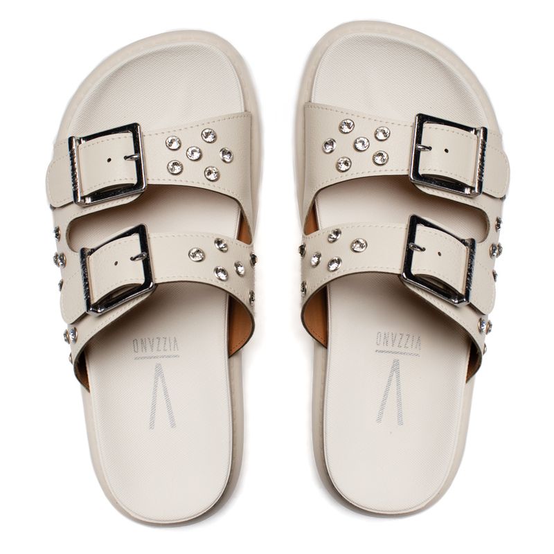 CALÇADOSFEMININOCHINELOSChinelo Feminino Vizzano Flatform Fivelas Strass Off White